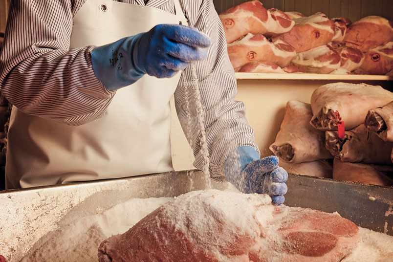 Nissens echter Katenschinken wird seit eh und je unverändert von Hand hergestellt. Allerbeste Schweinehinterschinken, die reine Handsalzung - u.a. mit Meersalz - und der feine Katenrauch nach alter Kätner Art geben diesem Naturprodukt seinen unverwechselbaren milden, etwas nussartigen, leicht süßlichen Geschmack.
